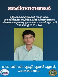2023 - 26 LK ബാച്ചിൽ നിന്ന് 8 കുട്ടികൾ അനിമേഷൻ / പ്രോഗ്രാമിങ് വിഭാഗങ്ങളിൽ നിന്നായി ഈ വർഷത്തെ സബ്ജില്ലാ ക്യാമ്പിലേക്ക് തിരഞ്ഞെടുക്കപ്പെട്ടു അനന്തകൃഷ്ണൻ പി , മിത്ര കൃഷ്ണ ഏ പി , വൈശാഖ് പി വി , പ്രയാഗ് പി എന്നിവർ പ്രോഗ്രാമിങ് വിഭാഗത്തിലും അദ്വൈത് എസ് ദിവാകർ , ബാലഗോപാൽ എം ബി , ഗൗരിജിത്ത് എം. അജേഷ് , സാന്ദ്ര പി വി എന്നിവർ അനിമേഷൻ വിഭാഗത്തിലും പങ്കെടുത്തു. ചേർത്തല SNM Govt. Boys HSS ൽ വെച്ച് നവംബർ 23, 24 തീയതികളിൽ നടന്ന സബ്ജില്ലാ ക്യാമ്പിൽ നിന്ന് ബാലഗോപാൽ എം ബി ജില്ലാ ക്യാമ്പിലേക്ക് തിരഞ്ഞെടുക്കപ്പെട്ടു. അർത്തുങ്കൽ GRFTHS ൽ വെച്ച് ഡിസംബർ 27 , 28 തീയതികളിൽ നടന്ന അനിമേഷൻ വിഭാഗം ജില്ലാ ക്യാമ്പിൽ നിന്ന് ബാലഗോപാൽ എം ബി സംസ്ഥാന ക്യാമ്പിൽ പങ്കെടുക്കുന്നതിന് യോഗ്യത നേടി. 2025 ഫെബ്രുവരി 8, 9 തീയതികളിൽ CFOSS, തിരുവനന്തപുരത്ത് വെച്ച് നടന്ന സംസ്ഥാന ക്യാമ്പിൽ പങ്കെടുത്ത ബാലഗോപാലിനെ സ്കൂൾ പഠനോത്സവത്തിൽ അനുമോദിച്ചു.
