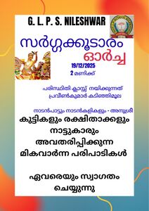 വിവിധ പാഠ്യപാഠ്യേതരപ്രവർത്തനങ്ങൾ കൊണ്ട് സംസ്ഥാനത്തെ വിദ്യാലയങ്ങളുടെ പട്ടികയിൽ മുൻപന്തിയിൽ നിൽക്കുന്ന വിദ്യാലയമാണല്ലോ ജി എൽ പി എസ് നീലേശ്വരം. എല്ലാ നാട്ടുകാരുടെയും രക്ഷിതാക്കളുടെയും ജനപ്രതിനിധികളുടെയും സഹായസഹകരണങ്ങൾ കൊണ്ട് ഏറ്റെടുക്കുന്ന എല്ലാ പ്രവർത്തനങ്ങളും വിജയകരമാക്കി തീർക്കാൻ നമുക്ക് സാധിക്കുന്നതിൽ ചാരിതാർത്ഥ്യമുണ്ട്.