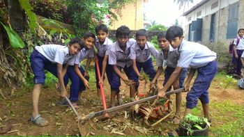 കുട്ടികള് നിലം ഒരുക്കി മരം നടുന്നു