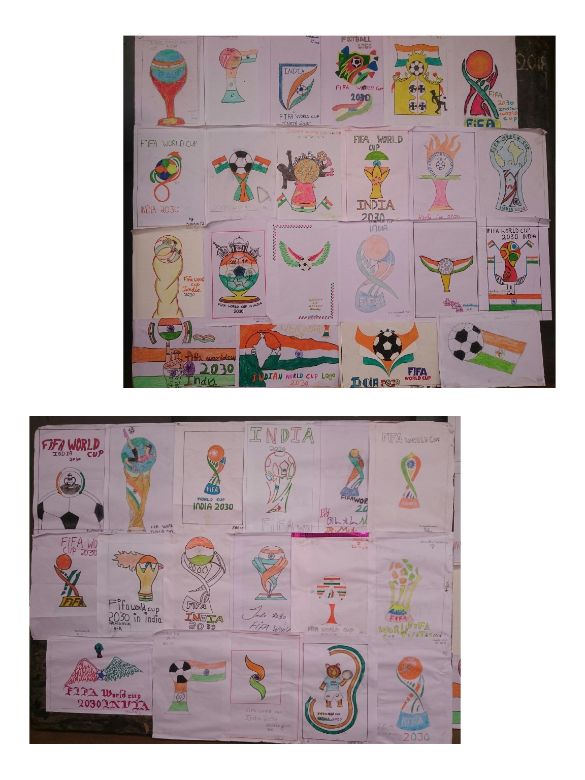 മലയാളം⧼Colon⧽ 2030ലെ ഫിഫ വേൾഡ് കപ്പ് ഫുട്ബോൾ ഇന്ത്യയിലാണെങ്കിൽ എന്ന വിഷയത്തിൽ അഞ്ചുമുതൽ പത്തുവരെ ക്ലാസുകളിലെ കുട്ടികൾ സൃഷ്ടിച്ച ലോഗോകൾ