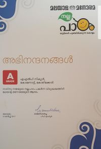 കുരുവട്ടൂർ ഗ്രാമ പഞ്ചായത്ത് സംഘടിപ്പിച്ച 2018-19 സ്വാതന്ത്ര്യദിന ചരിത്ര ക്വിസ് മത്സരത്തിൽ LP വിഭാഗത്തിൽ ഒന്നാം സ്ഥാനം നേടി നാലാം ക്ലാസിലെ സായന്ത്.ഇ മികവ് തെളിയിച്ചു