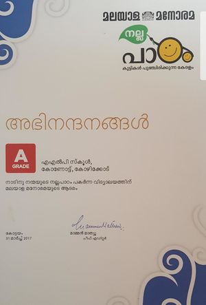 2017 ലെ മികച്ച വിദ്യാലയപ്രവർത്തനങ്ങൾക്ക് മലയാള മനോരമ നല്ലപാഠം A+ പുരസ്ക്കാരം