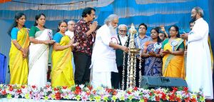എച്ച്.എം,സ്കൂൾ മാനേജർ,പി.ടി.എ എക്സിക്യുട്ടീവ്സ് ബഹു. വിദ്യഭ്യാസ മന്ത്രി. പ്രൊഫ.സി.രവീന്ദ്രനാഥിനെ സ്വീകരിക്കുന്നു