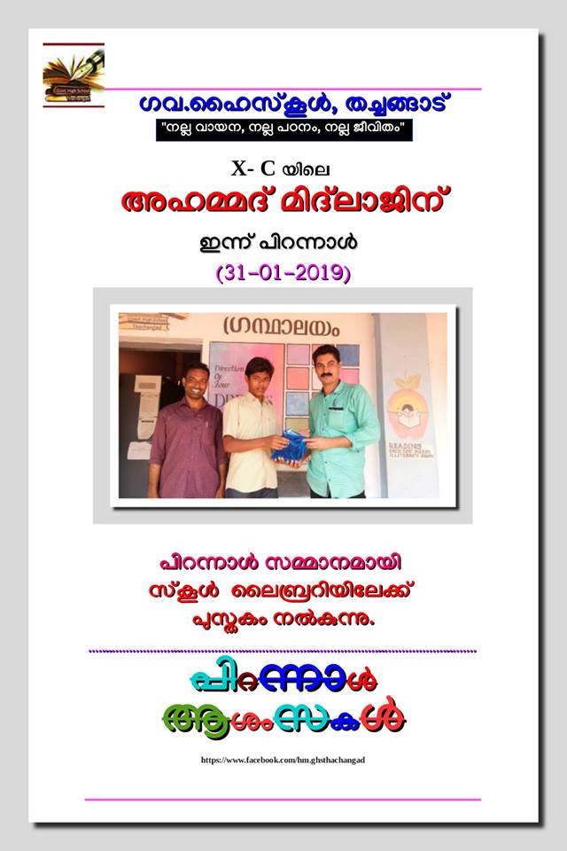 തച്ചങ്ങാട് ഗവ.ഹൈസ്കൂൾ ലൈബ്രറിയിലേക്ക് പുസ്തകങ്ങൾ നൽകി പിറന്നാളോഘോഷിച്ചവർ