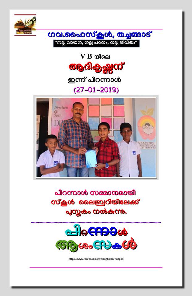 തച്ചങ്ങാട് ഗവ.ഹൈസ്കൂൾ ലൈബ്രറിയിലേക്ക് പുസ്തകങ്ങൾ നൽകി പിറന്നാളോഘോഷിച്ചവർ