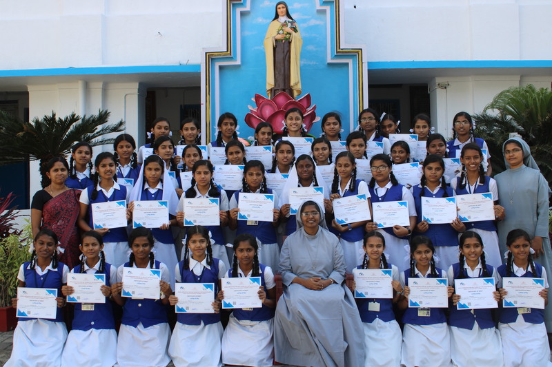 മലയാളം⧼Colon⧽ ആദ്യ ബാച്ച് ലിറ്റ്ൽ കൈറ്റ്സിന് പ്രധാനധ്യാപിക സർട്ടിഫിക്കറ്റ് വിതരണം ചെയ്യുന്നു.